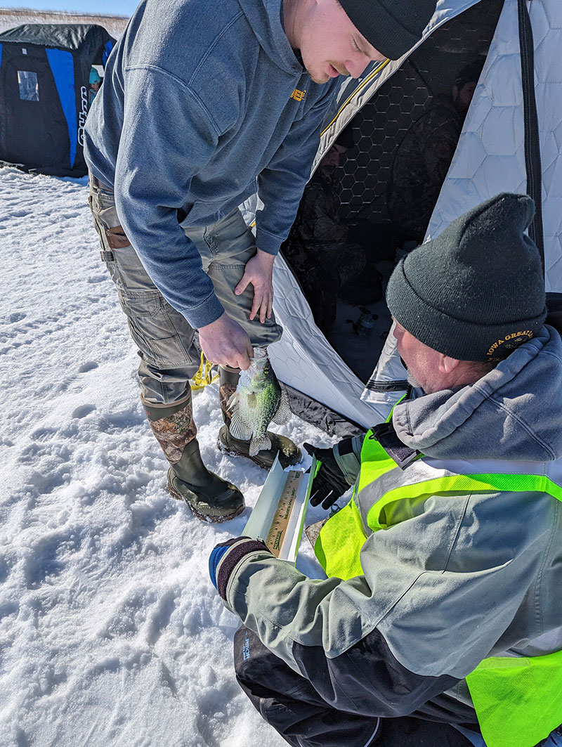 The day began with registration and coffee and hot chocolate provided by Mud on Main Coffee House from Cherokee, followed by a morning of fishing for crappies, bluegills and largemouth bass, culminating with an awards ceremony and a lunch of chili provided by Spencer Hy-Vee and spaghetti from By the Bucket of Spencer.