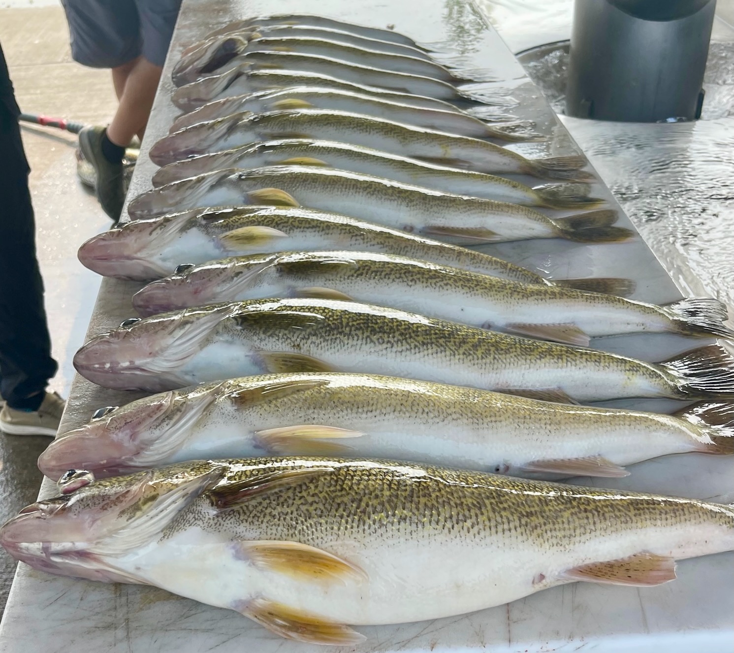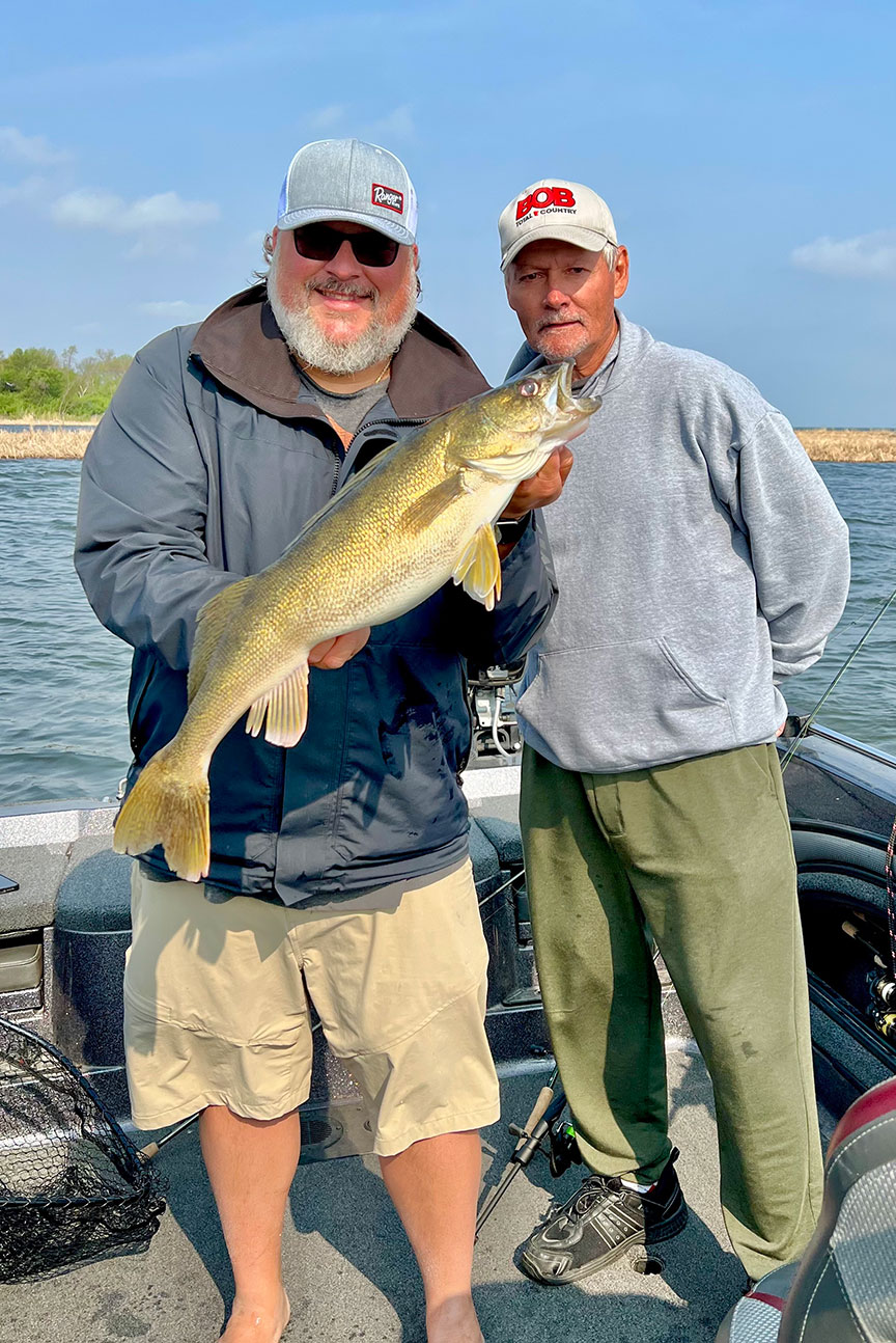 While Tuesday was a calm day, Wednesday brought southeast winds at 20-30 mph. Three of the groups went out even though they were limited by the wind. Guide Jared Pokrzywinski of the Devils Lake Pro Staff helped Bob Krejci catch and release a 28” ‘eye on a slip bobber.