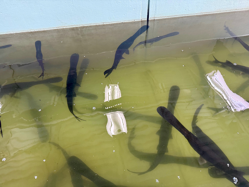- Paddlefish swimming in Hatchery tanks.