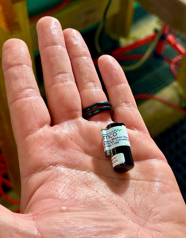 - One of the 25 acoustic tags that will be implanted on a select group of the 1900 stocked paddlefish.