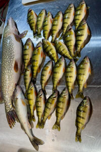 The first three years are the years of the most growth for perch. If things hold together, by year three, perch will have grown to be up to eight inches. If they get to that length by then, most likely a big year class of catchable/keepable perch will be on the horizon. The growth rate slows down after those first three years, thus the big perch will mostly be in the 10-11+ inch size. Of course, every once in a while it seems everything aligns perfectly and you have back to back-to-back good fishing years. I am hoping that 2025 and 2026 will be one of those up cycles.